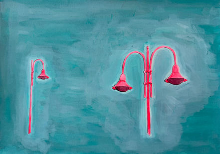 Chaque toile est pensée comme un moment, elle est fugace et ne nous permet pas de savoir ce qu’il s’est passé avant ou ce qu’il y aura après. Elle est coincée par sa fixation, figée comme si quelqu’un quelque part avait appuyé sur le bouton pause. Dans cet entre-temps il ne reste plus qu’a imaginer dans quel récit elle s’inscrit.
