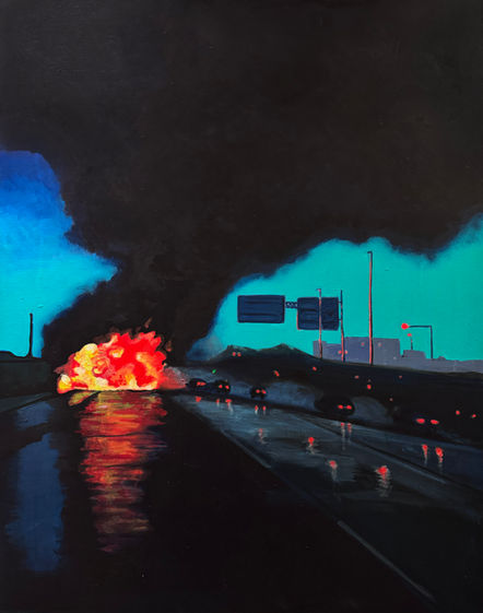 Ma peinture - que je qualifie de proto-narrative - est empreinte de mon intérêt pour le cinéma et de façon plus générale interroge la notion de réel et de fiction.